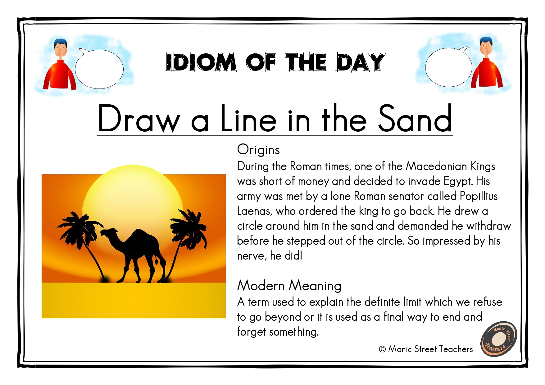 Each pack has a selection of resources that explain the origins and meanings of idioms which come from various periods of history.