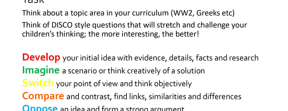 DISCO has provided us with a way of ensuring that we are consistently seeking to challenge and stretch the children’s thinking across the curriculum. It’s simple and it’s fun, which in my opinion is often the key for successful ideas!
